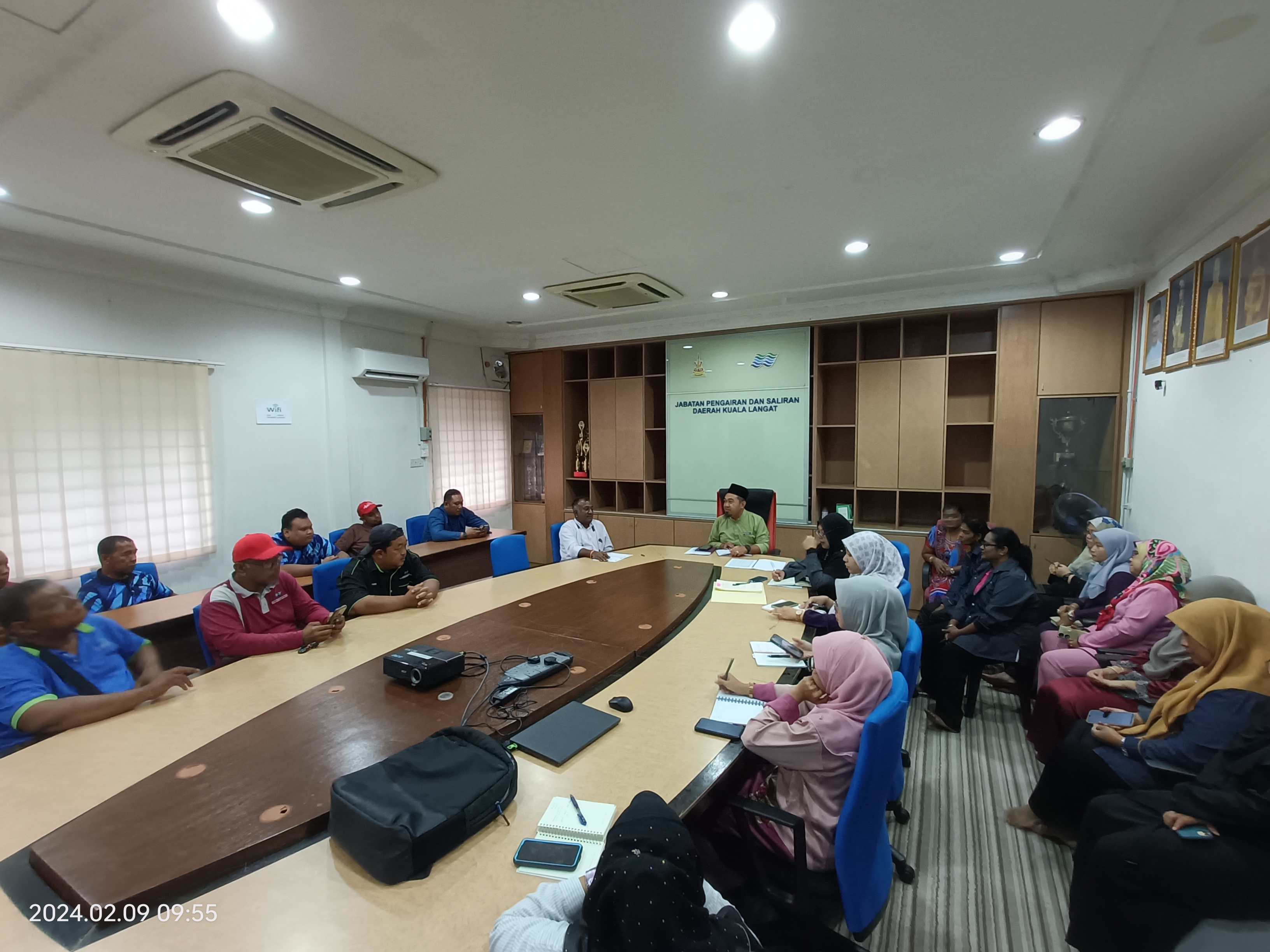 Pada 09 Februari 2024 (Jumaat) , Pentadbiran Jabatan Pengairan Dan Saliran Daerah Kuala Langat Telah Mengadakan Sesi Perjumpaan Bersama Tuan Jurutera Daerah Yang Baharu Iaitu Tuan Epyzul Akmal Bin Mohd Shahali Yang Memulakan Tugas Di Pejabat Ini Mulai 15 Januari 2024. Perjumpaan Diadakan Di Bilik Mesyuarat JPS Kuala Langat Bertujuan Untuk Sesi Suai Kenal Bersama Kakitangan Dan Mengenal Pasti Permasalahan Dan Aduan Kakitangan Pejabat Di Samping Memberi Pemakluman Berkenaan Isu Melalui Mesyuarat-Mesyuarat JPS Negeri Yang Telah Dihadiri.